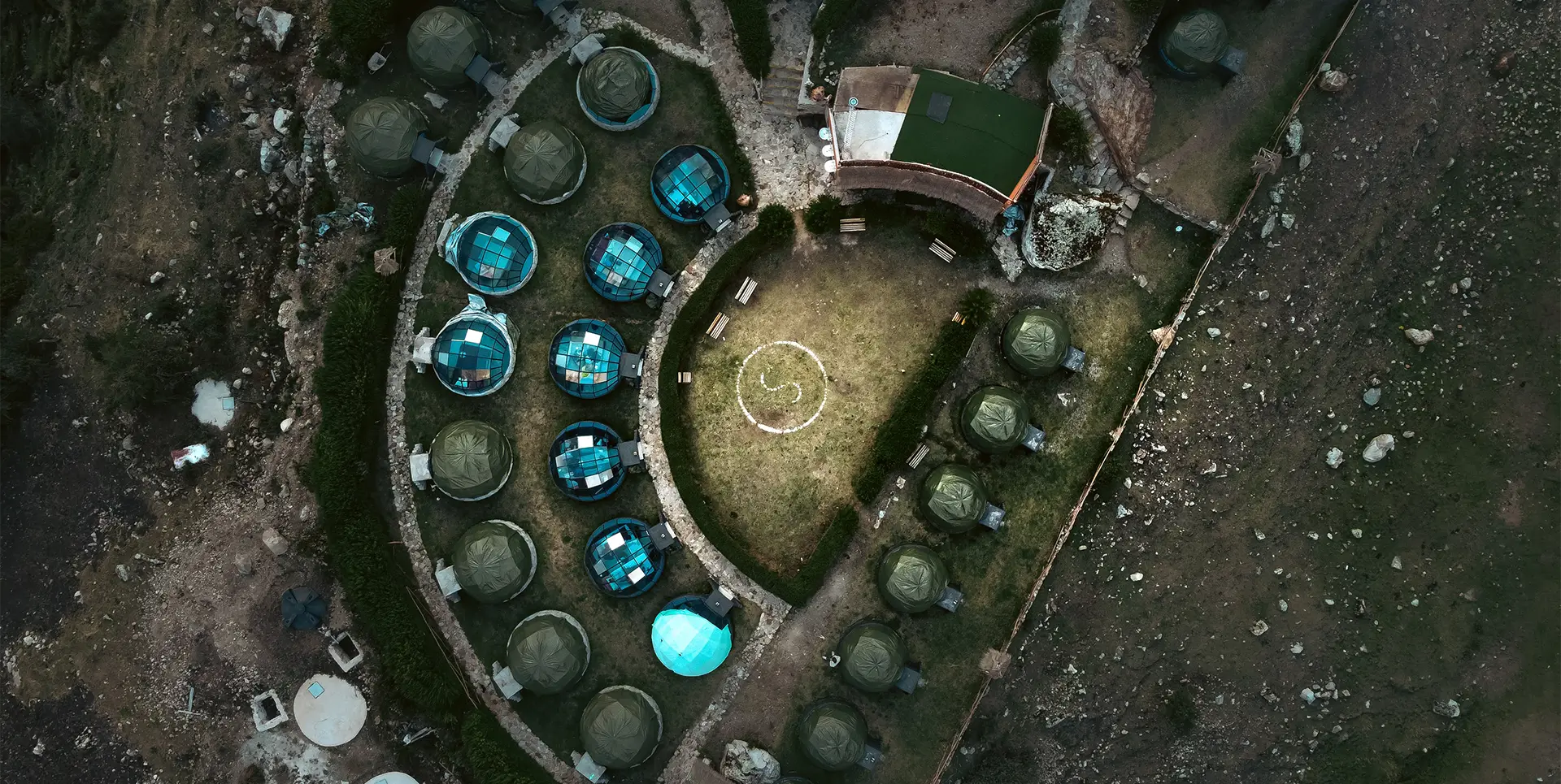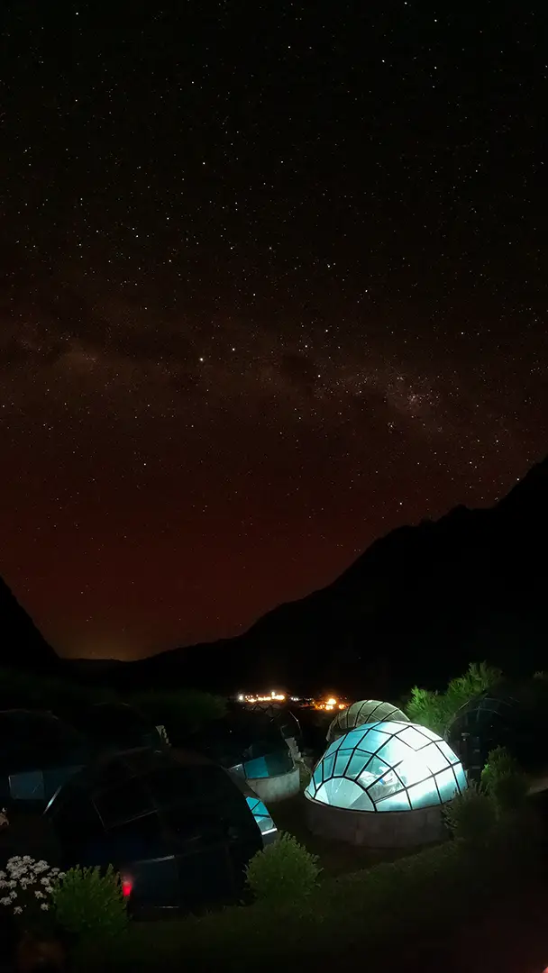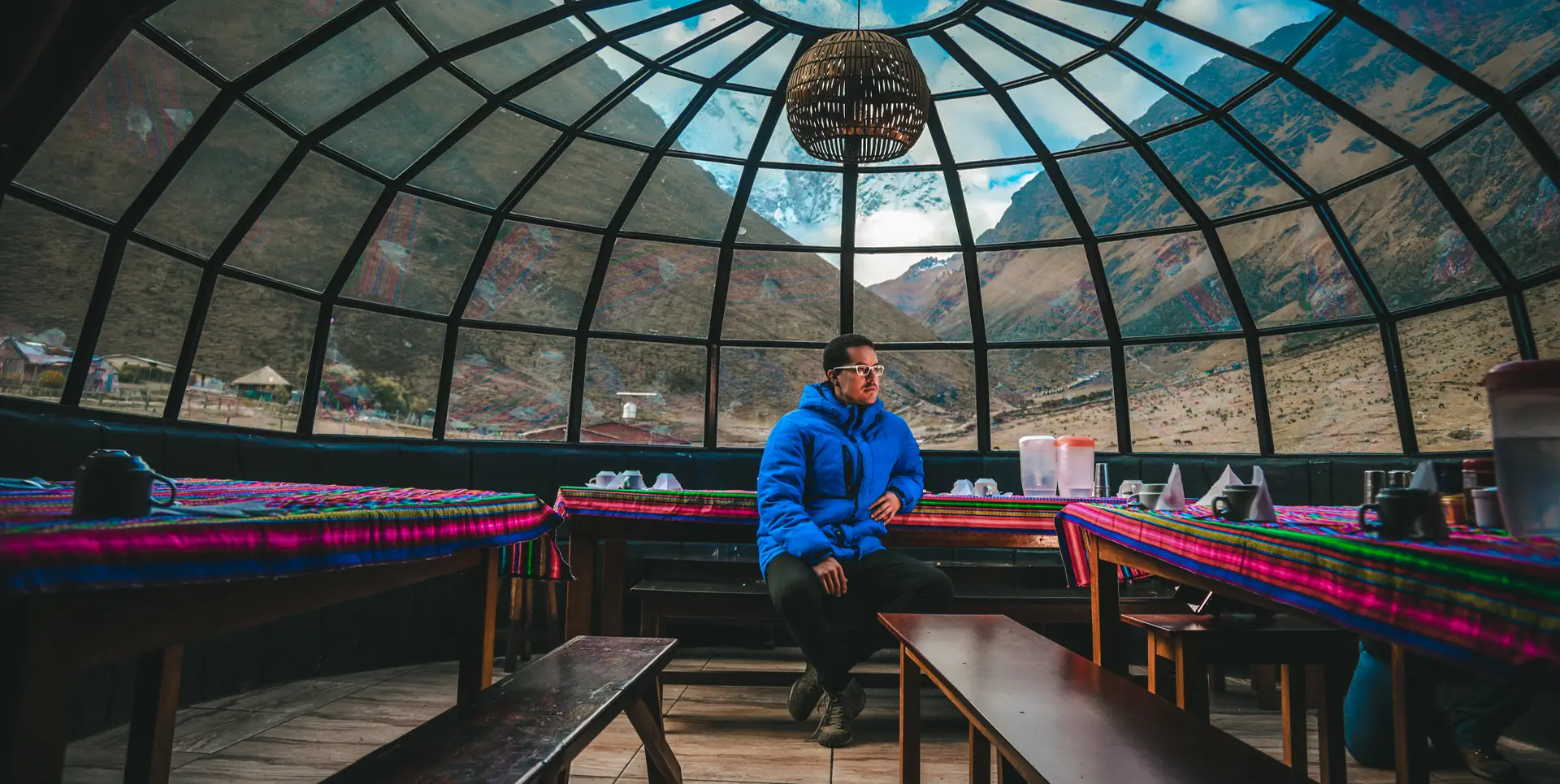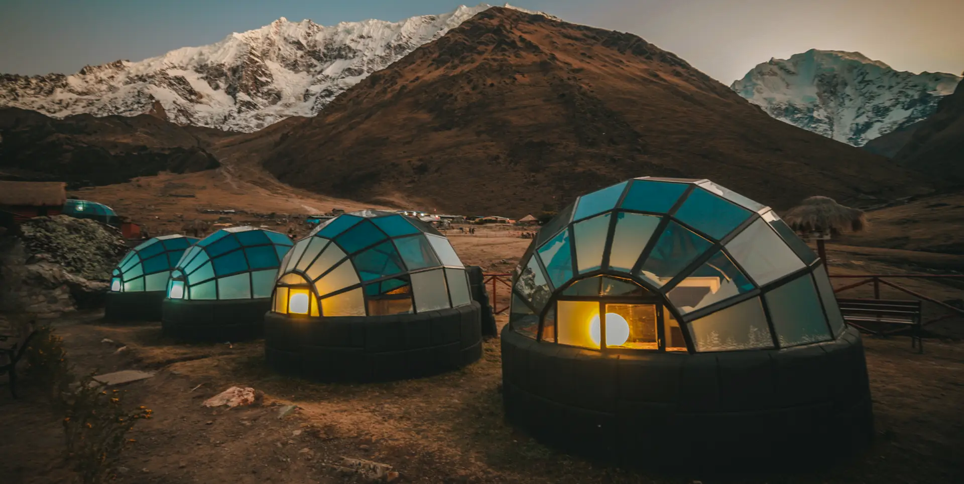 Our authentic camp is made up of glass domes that are located in front of the Apus or sacred mountains: Humantay and Salkantay, and allows the perfect union of heaven and earth. You will be able to recharge your energy in front of the protective gods and rest with an exceptional 360° view of the Andean sky.